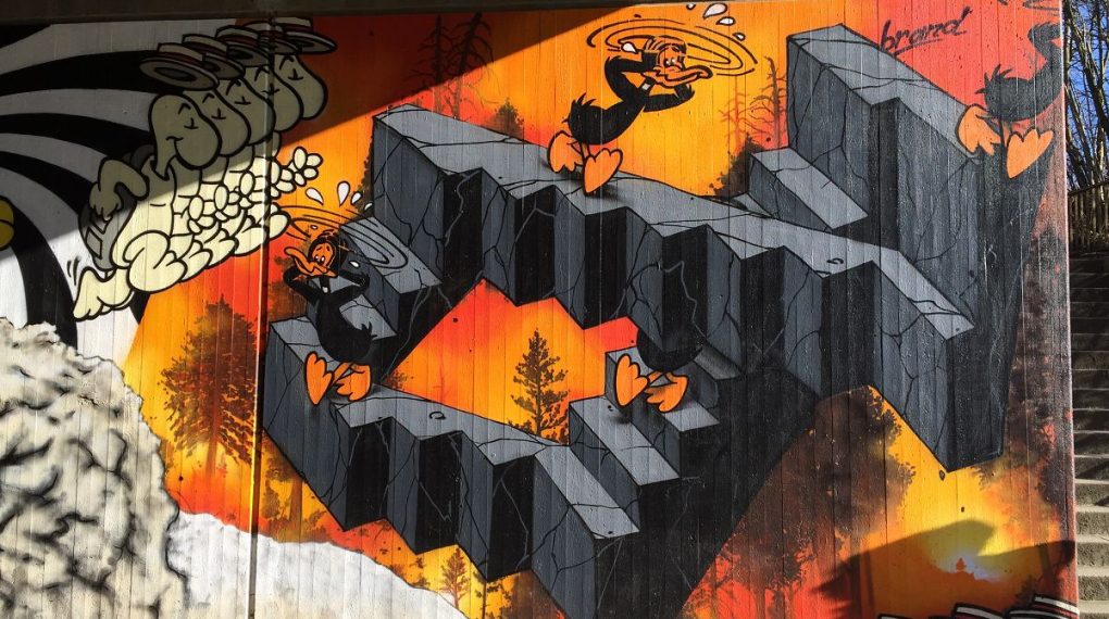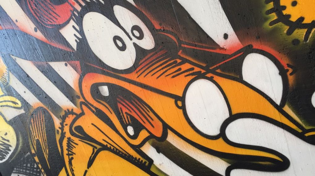 Fundstück in Wuppertal unter einer Brücke. Schöne Comic-Kunst als Graffiti. Hier die Fotos der Sprayer-Kunst: