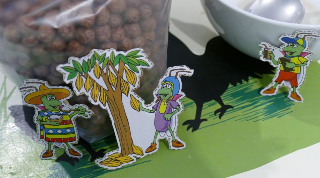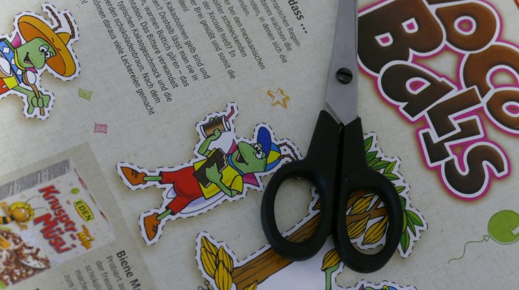 Im Jogurt oder mit Milch oder Mandeldrink schmecken die kleinen Schokobälle – nicht zu süß, dafür knackig. Tatsächlich mag ich den etwas bitteren Geschmack. Den Honig schmeckt man, oder eher ich, jedoch nicht heraus. Zum Basteln gibt es übrigens auf der Rückseite drei grüne Figuren zum Ausschneiden. Es ist wohl immer ein und dasselbe Männchen, das wohl das Maskottchen der Choco Balls ist. Vielleicht der Choco Ball? Oder Manfred? Man weiß es nicht so genau. Der Kostenpunkt liegt zwischen 3 bis 5 Euro für 375 Gramm – meist erwischt man Eden-Produkte im Reformhaus oder gut sortiertem Bio-Sortiment.