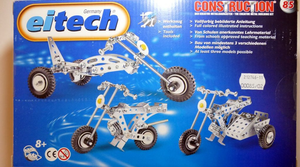 eitech – die Eichsfelder Technik eitech GmbH aus Pfaffschwende stellt Lernspielzeug Made in Germany her. Mit dem Modell Nummer 85 gibt es aus der Serie Construction – Der kreative Metallbaukasten – ein Motorrad mit Beiwagen. TopFree.de hat den metallischen Flitzer mal zusammengebaut