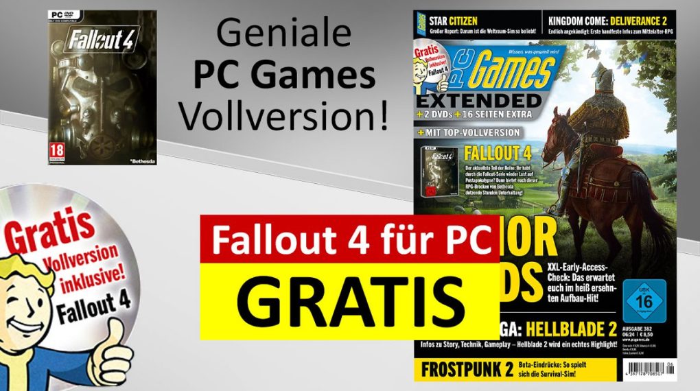 Wer es noch nicht in der Spiele-Vollversionen in Zeitschriften – Juni 2024 gesehen hat: Die neue PC Games Extended 06/2024 kommt mit der gratis Vollversion Fallout 4 daher! Im gut sortierten Zeitschriftenladen für 8,50 Euro. Euren findet ihr bei MyKiosk.de.