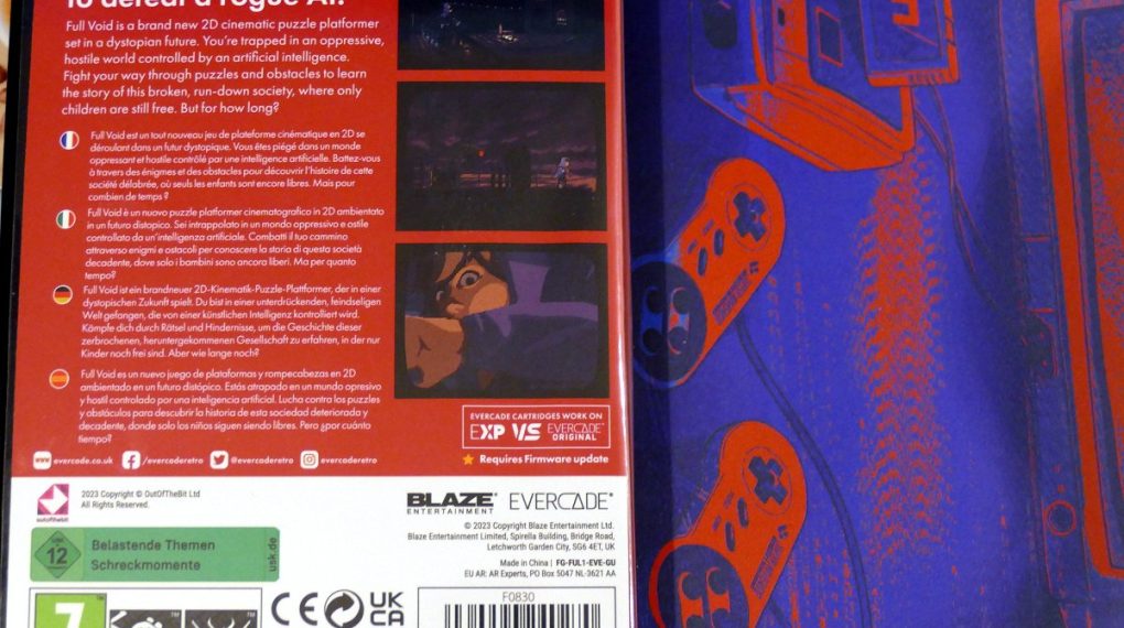 Full Void ist ein wunderschöner Plattformer in einer düster angelegten Pixelwelt. Die Grafik ist passend, die Zwischensequenzen handgezeichnet und programmiert wurde von Entwickler OutOfTheBit mit einer eigenes entwickelten Engine in C. Trotz des dystopischen Szenarios wirkt alles liebevoll (gestaltet). Man hat immer diesen Moment: Noch ein Stückchen weiter. Leider ist es dann zu schnell zu Ende. Doch trotz der kurzen Spielzeit ist es eines der empfehlenswertesten Spiele, die mir zuletzt unter gekommen sind. Für das Evercade mit Verpackung, Anleitung und Comic sowie in der Special Edition weiteren Extras, ein tolles Abenteuer-Spiel!