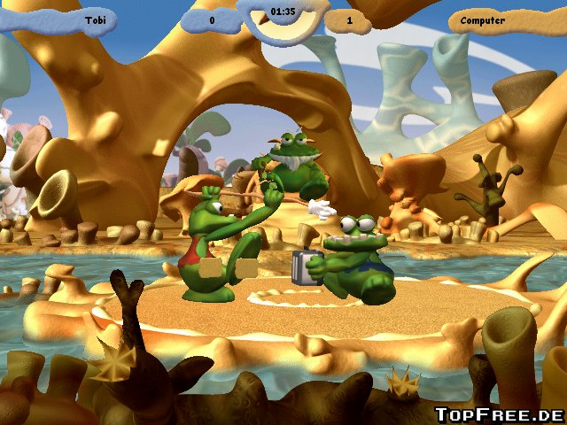 Zwei Gnarfs treten gegeneinander an. Es gilt durch gezielte Schläge den Gegner zu besiegen und aus dem Ring zu drängen. Wie beim Sumoringen. Dabei gibt es verschiedene Angriffsmöglichkeiten wie High-, Mid- und Low-Shack, aslso Hoch-, Mittel- und Tief-Schlag. Diese werden durch die Pfeilasten und einem Mausklick ausgeführt. Es gibt auch Abwehrtechniken, wie dem Gegner einfach mal den Allerwertesten zeigen oder als Holzbrett vor den Kopf halten. Dazu gibt es einen Spezial-Move (Verteidigungstaste plus Leertaste). Achtet aber darauf, dass der Schiedsrichter gerade ein wenig eingenickt ist. Denn dieser Spezialangriff kann sonst zu einem Regelverstoß mit Disqualifikation führen.