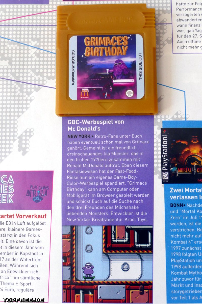 Es ist jetzt möglich, mit ein paar kleineren Abstrichen, dass kostenlose Game Boy Color Spiel „Grimace’s Birthday“ für McDonalds auf dem klassischen Game Boy (DMG) mit einem Patch zu spielen.