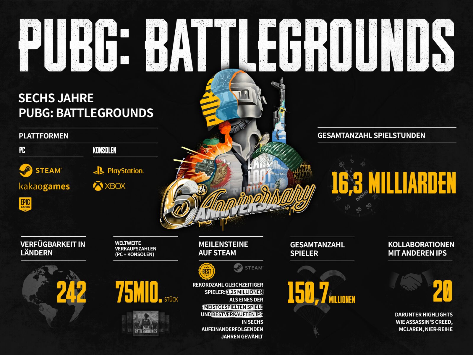 Infografik der PUBG Meilensteine zum 6. Jahrestag