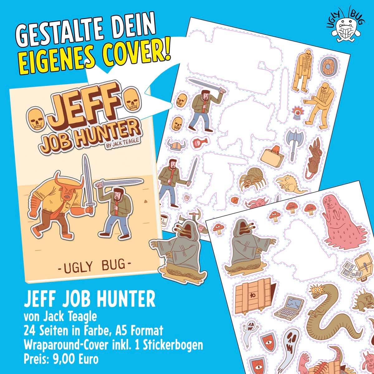 Independent-Verlag Plem Plem Productions hat mit Jeff Job Hunter von Jack Teagle einen neuen Comic unter dem Label UGLY BUG Imprints im Sortiment. Der Clou dabei: Du kannst das Cover selber mit Stickern gestalten.