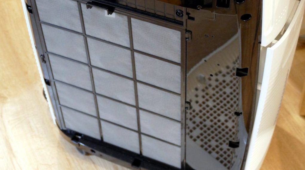 Der Filter besteht aus einem HEPA- und Geruchsfilter, hier einem sogenannten Deodorfilter – Achtung: Kein Aktivkohlefilter – sowie einem Vorfilter. Offiziell heißt es: „Ein hochwirksames, mehrstufiges Reinigungssystem filtert zuverlässig Schadstoffe und Verunreinigungen aus der Luft: Staub, Feinstaub (PM10, PM2.5 und kleiner), Pollen und andere luftgetragene Allergene sowie Krankheitserreger wie Bakterien und Schimmelsporen, Zigarettenrauch, Abgase und Gerüche.“ Für die Luftbefeuchtung gibt es zudem eine extra Verdunster-Kassette.