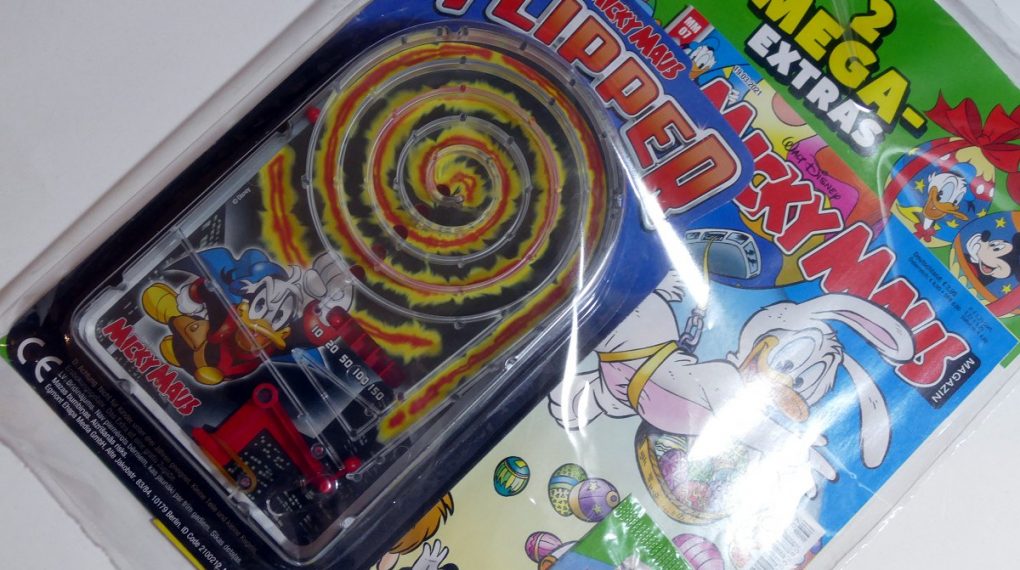 Waaas? Ich wollte mir doch gar nicht mehr so oft ein Micky Maus Heft kaufen. Jetzt ist es wieder um mich geschehen – und Schuld daran war tatsächlich das mitgelieferte Gimmick, ein Flipper.