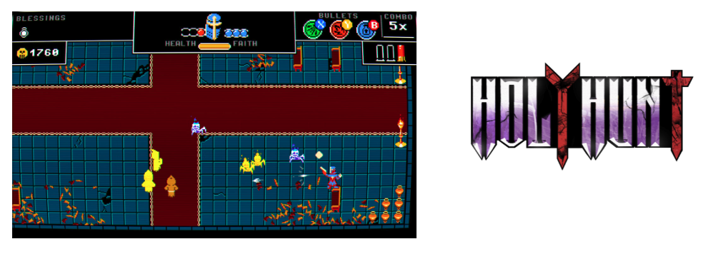 Holy Hunt (Artificial). In diesem 8-Bit-Retro-Top-Down-Shooter sind Glaube, Waffen und dein heiliger Schlag deine einzige Chance, die Horden von Dämonen zu überleben. Lassen Sie sich in die 8-Bit-Ära von Nintendo zurückversetzen und erleben Sie eine actiongeladene, schnelle und präzise Spielwelt, die Sie zu Furchtlosigkeit und Durchhaltevermögen anspornt. Schalten Sie Ihre Feinde in einer einzigartigen, kugelbasierten Spielschleife aus, indem Sie Ihr Arsenal an Geschosstypen und den Segen von Engeln einsetzen, um die vier Reiter aufzuhalten und die Prophezeiung des Jüngsten Gerichts zu verhindern.
