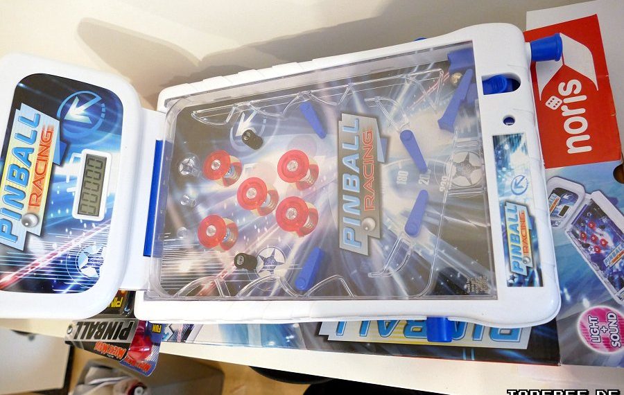 Aldi hatte einen Flipper im Angebot. Einen elektronischen Flipper von Noris-Spiele, bzw. der Simba Dickie Group, die 2001 den deutschen Spieleverlag aus Fürth übernahmen. „Pinball Racing“ ist dabei ein elektronisches Spielzeug.