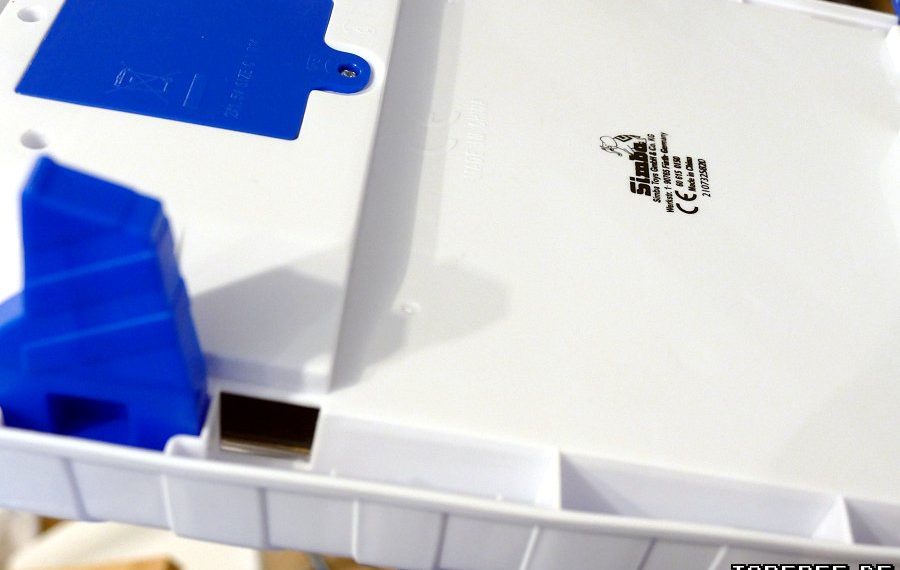 Einmal aus der Verpackung genommen, liegt nur noch ein kleiner Hinweiszettel zu den Batterien dabei. Eine Anleitung gibt es nicht, beziehungsweise ist seitlich anhand von vier Bildern auf der Verpackung aufgedruckt. Der Flipper schluckt zwei R14 Batterien (auch als C, Baby oder LR14 bezeichnet). Also keine handelsüblichen AA-Batterien, die man normalerweise schon zu Hause hat. Die Standfüße sind seitlich im Flipper eingelagert und müssen nur noch in die entsprechenden Stellen reingeschoben werden. Ebenfalls hier gibt es keinerlei Anleitung dazu.