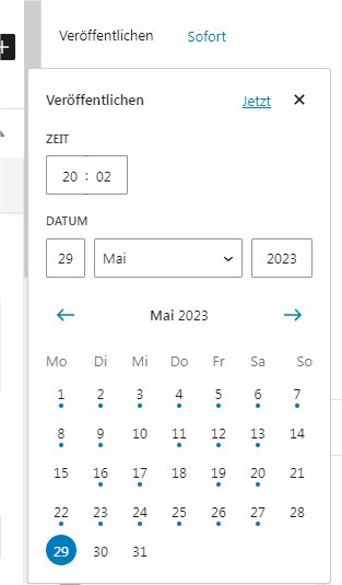 Was bedeutet eigentlich der blaue Punkt bei der Datumsanzeige unter „Veröffentlichen“ bei WordPress?