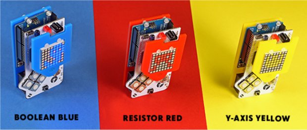 Das DIY Gamer Kit gibt es jetzt auch in Farbe. Blau („Boolean Blue“), Rot („Resistor Red“) oder Gelb („Y-Axis Yellow“) steht zur Verfügung. Der Kostenpunkt für eine Vorbestellung liegt bei £70.00 ( ~ 89,55 Euro) + Versandkosten. Hierbei müsst ihr allerdings das Gamer Kit noch in Do It Yourself-Manier zusammenlöten. Für £75.00 gibt es das vorgelötete Standard-Modell. Das normale DIY Gamer Kit kostet ansonsten £65.00. Allesamt mit Arduino.