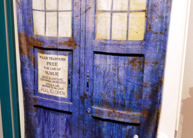 Fazit: Für mich die beste und am besten wiederverwendbarste Lösung mit dem Tardis Distressed Badetuch, ein offizielles Lizenzprodukt von BBC, eine Tür in eine Tardis zu verwandeln. Es ist zwar nicht die ganze Tür bedeckt und vor allem in der Höhe für eine normalgroße Tür nicht ausreichend, aber macht dennoch etwas her. Wem das Aussehen des Handtuchs gefällt, kann dieses gut dafür verwenden. Mir persönlich gefällt es als kostengünstige und leicht abnehmbare und vor allem immer wieder verwendbare Lösung – wenn es mal gar nicht mehr aussieht, kann man es immer noch als Handtuch verwenden – perfekt! Perfekt ist dabei natürlich wie bei allem Auslegeungs- und hier Geschmackssache. Aber hey, meine Tür ist eine TARDIS! Ziel erreicht.