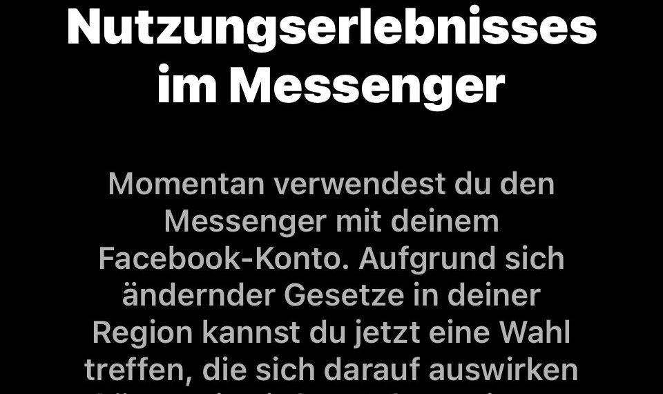„Du kannst jetzt auswählen, ob du den Messenger weiterhin mit deinem Facebook-Konto verwenden oder ein neues Konto erstellen möchtest, um den Messenger ohne dein Facebook-Konto zu verwenden.“