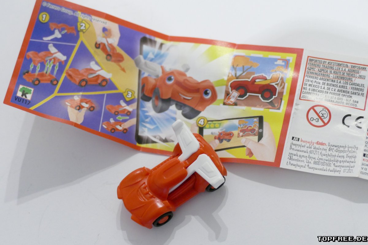 Bei diesem Spielzeug gibt es keine Aufkleber zum Aufkleben und es besteht aus insgesamt drei Teilen, die schnell zusammengesteckt sind. Der weiße Flügel lässt sich nach hinten schieben als Heckspoiler und für den spielerischen Flugmodus nach vorne. Wieder angepriesen wird die App „Applaydu“ von kinder. Allerdings muss man sich dafür dort registrieren, deswegen ist sie direkt wieder heruntergeflogen, da ich da ehrlich gesagt keine Lust zu hatte.