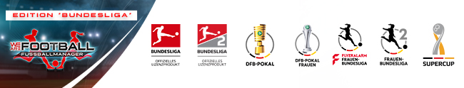 Die WE ARE FOOTBALL Edition „Bundesliga“ enthält alle Clubs der Saisons 2020/21 und 2021/22 (Daten verfügbar zur neuen Saison) – aus der Bundesliga und 2. Bundesliga sowie aus der FLYERALARM Frauen-Bundesliga und der 2. Frauen-Bundesliga – eine Premiere für Fußball-Manager-Games. Mit dabei sind auch die Wettbewerbe DFB-Pokal und der Supercup, die zusätzlich zu den Ligen gespielt werden können.