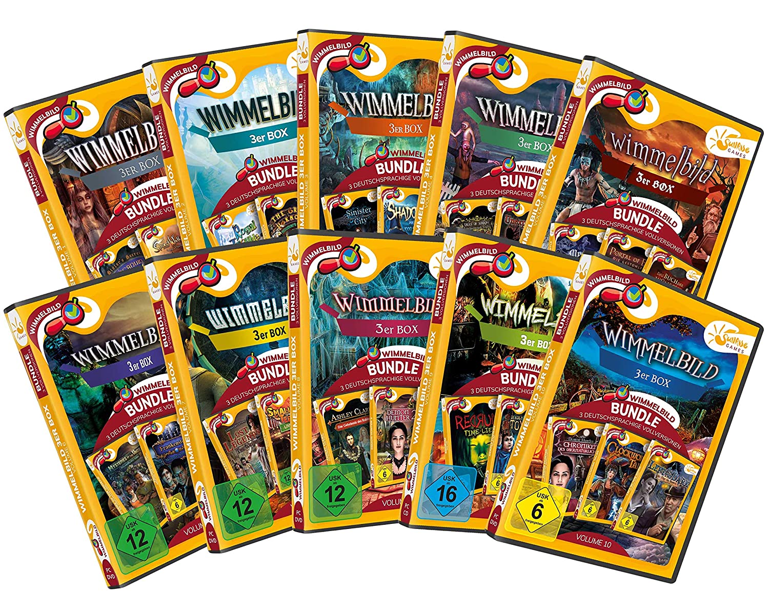 Enthalten sind beim Wimmelbild Mega Bundle auf zehn CDs folgende Spiele: