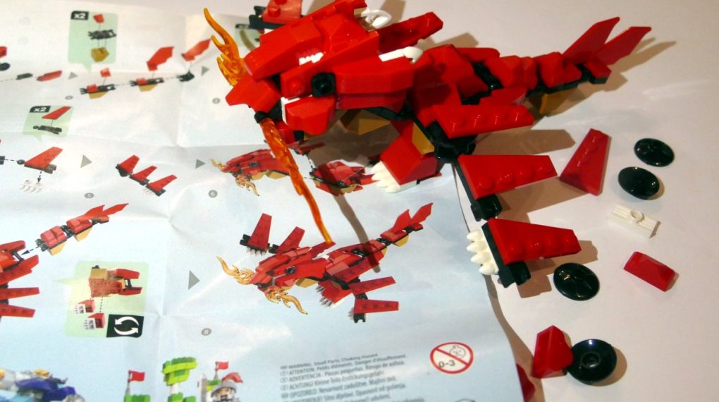 Der Aufbau ist manchmal etwas friemelig, da die Steine nicht immer komplett fest ineinander sitzen. Insgesamt dauert dieser ca. 45 Minuten. Zum Spielen wird es etwas schwierig, da dann immer mal wieder Teile abfallen könnten. Dementsprechend ist es vielleicht ein Deko-Objekt – oder man hat Spaß daran immer mal wieder Teile neu einzusetzen. Übrig geblieben sind unter anderem vier schwarze runde Bausteine, die aussehen wie Teller. Keine Ahnung, wofür diese sind, in der Anleitung kommen sie nicht vor, obwohl auf der Verpackung hinten aufgedruckt.