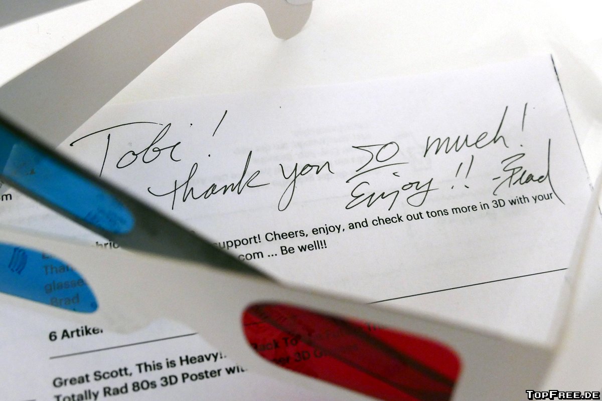 Bei allen Postern wurde je eine 3D-Brille (rot-blau) mitgeliefert. Schon ohne sehen die Poster klasse aus. Bei allen fällt es nicht auf, dass dies diese 3D versetzten Poster sind, die sonst in normaler Ansicht teilweise gruselig aussehen. Bei manchen ist es sogar auf den zweiten Blick nicht erkennbar. Klasse gemacht!
