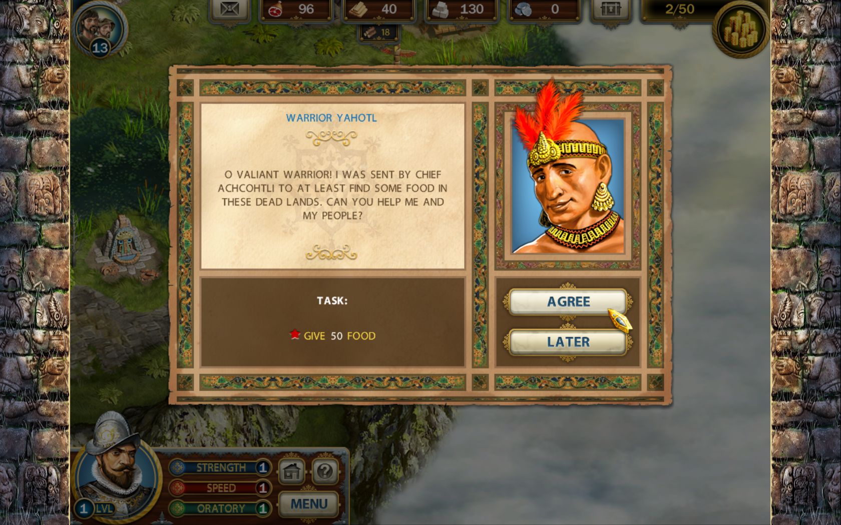 In 10 umfangreichen Levels haben die mutigen Siedler nun etliche Missionen zu bewältigen. Verschiedenste Territorien im Dschungel und am Rande endloser Sümpfe müssen erschlossen und so bebaut werden, dass stets genügend Rohstoffe für weitere Bauvor-haben zur Verfügung stehen. Somit steht neben der Errichtung von Wohngebäuden auch der Bau von Produktionsstätten für Baumaterialen und Lebensmittel, wie beispielsweise Sägewerke oder Gärtnereien, auf dem Plan. Es lohnt sich, den Einheimischen, die hin und wieder den Weg der Abenteurer kreuzen, bei Bedarf zu helfen, denn in aller Regel revanchieren sie sich auf lukrative Weise. Achtgeben sollte man hingegen, wenn Commander Rodriguez auftaucht, denn er führt Finsteres im Schilde…