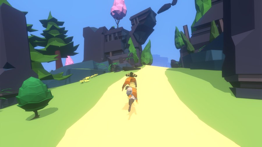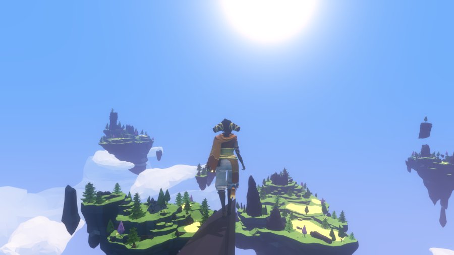 In einem Mix aus Action-Adventure und Flugpassagen wird man Auk auf ihrer Pilgerreise durch AER begleiten. Das surreale Abenteuer wird durch eine sehr reduzierte, aber dennoch farbenfrohe, low-poly Optik unterstützt, die dem ruhigen Ton der Spielwelt das passende Erscheinungsbild verpasst.