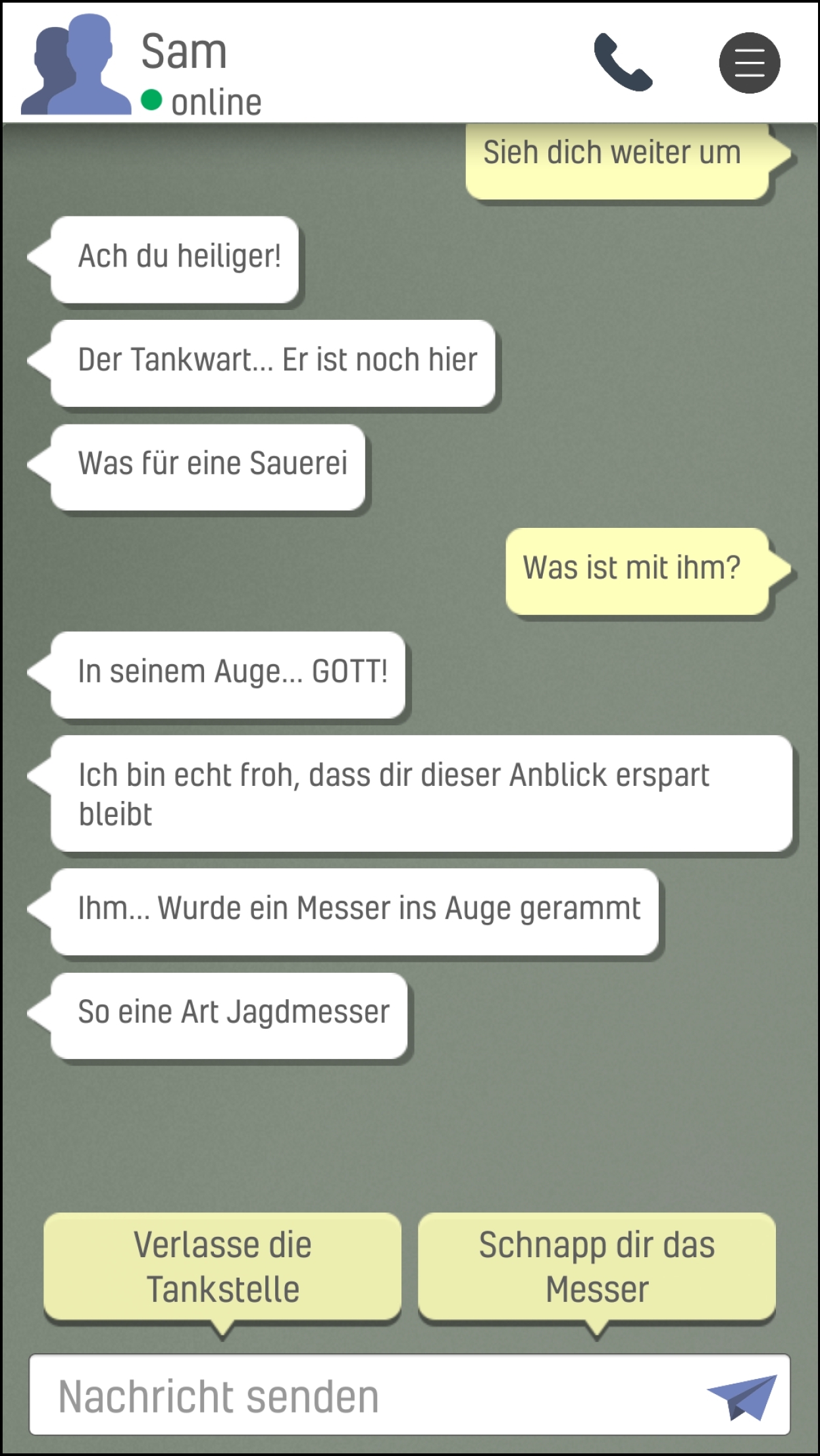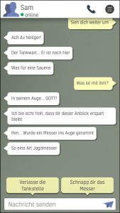 Immer wenn sich Sam nach einer solchen Pause zurückmeldet, erhältst du auf deinem Smartphone eine Push-Nachricht. Um zu antworten, musst du diese lediglich anklicken, also ganz so wie du es auch von anderen Chats gewohnt bist. Aber auch wenn eine sofortige Antwort ausbleibt, hat das keinen negativen Effekt auf die Geschichte. Doch meistens wirst du froh sein, dass Sam sich wohlbehalten bei dir zurückmeldet.