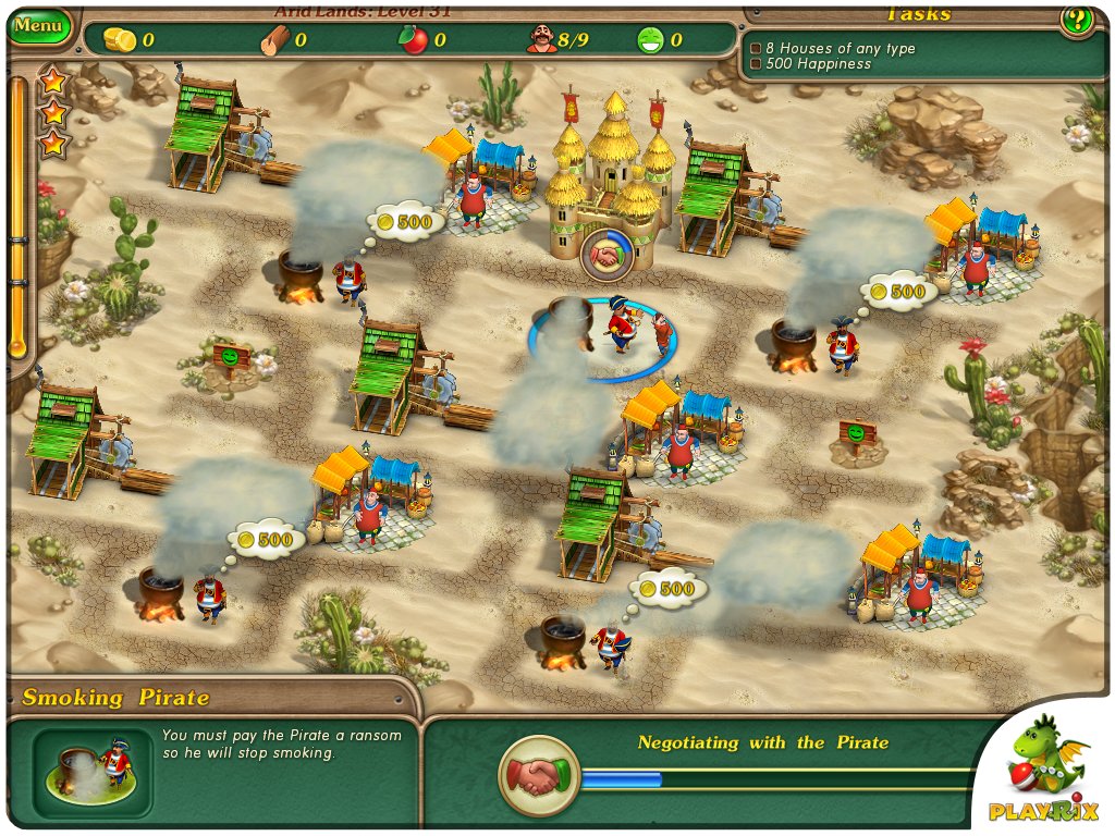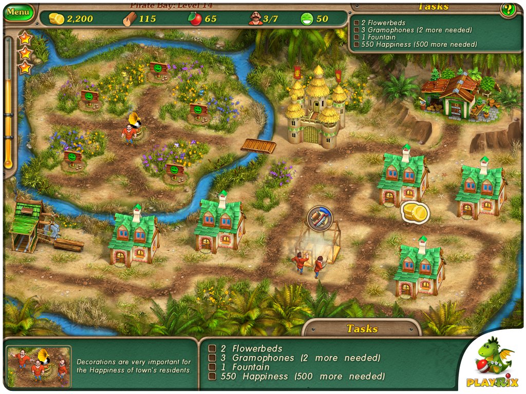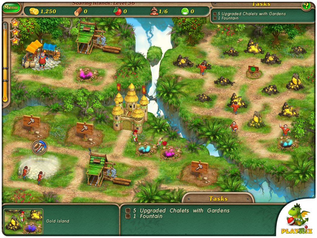 In bekannter Manier geht es in diesem abwechslungsreichen Mix aus Aufbau-Strategie- und Gegen-die-Zeit-Spiel auch gleich charmant los, denn schließlich ist Zeit ja gewissermaßen Geld. In über 80 Levels auf 11 unterschiedlichen Inseln gibt es jede Menge zu erledigen. Zunächst wünschen sich die Einheimischen robuste Behausungen und gangbare Wege, was für die routinierten Bau-Pioniere des Königs die kleinste Übung ist. Sägewerke und Forstbetriebe gehören deshalb aber auch zu den wichtigsten Produktionsstätten. In der Natur und auf dem Markt finden die fleißigen Arbeiter ihre Nahrung, denn wer hart arbeitet, muss schließlich auch essen.