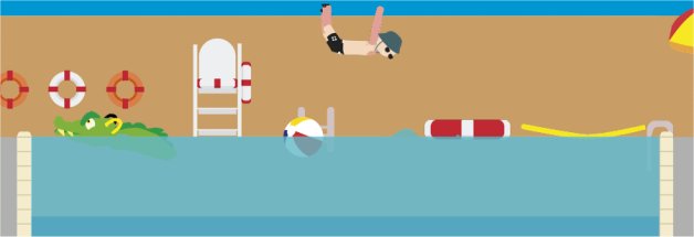 Wuhuuu! Ein Sprung in das kühle Nass vom Balkon aus. Nicht gerade ungefährlich.