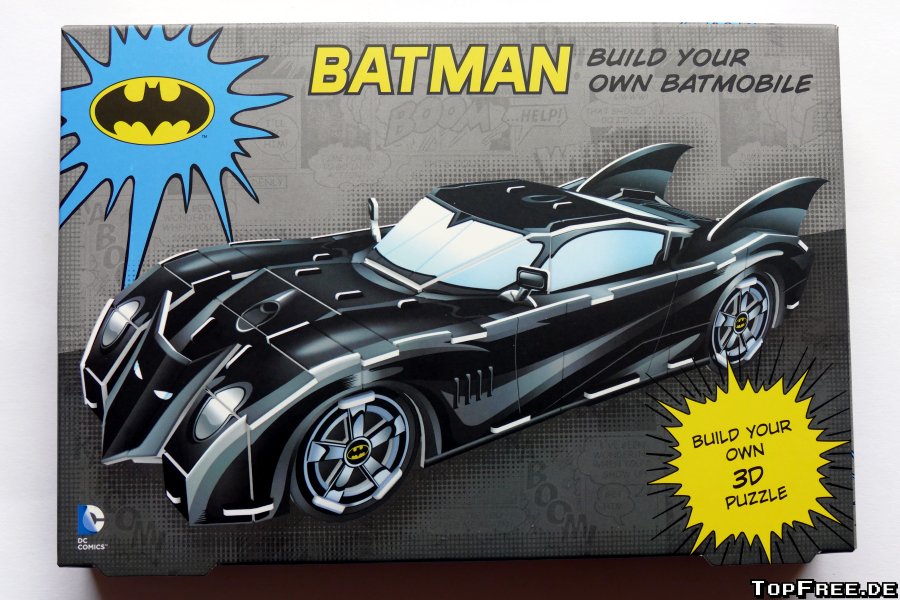 Baaaatmaaaaan! Wer schon immer mal sein eigenes Batmobil haben wollte, aber leider nicht über ein großes Vermögen verfügt, kann auf das günstigere Pappmodell zurückgreifen. Genauer gesagt ist es ein 3D-Puzzle, das am Ende das Batmobil in einer Größe von 6,5 × 26 × 9,5 cm ergibt. Fahren kann Auto dann zwar nicht, aber vielleicht ist es was für das Regal zum Anschauen?