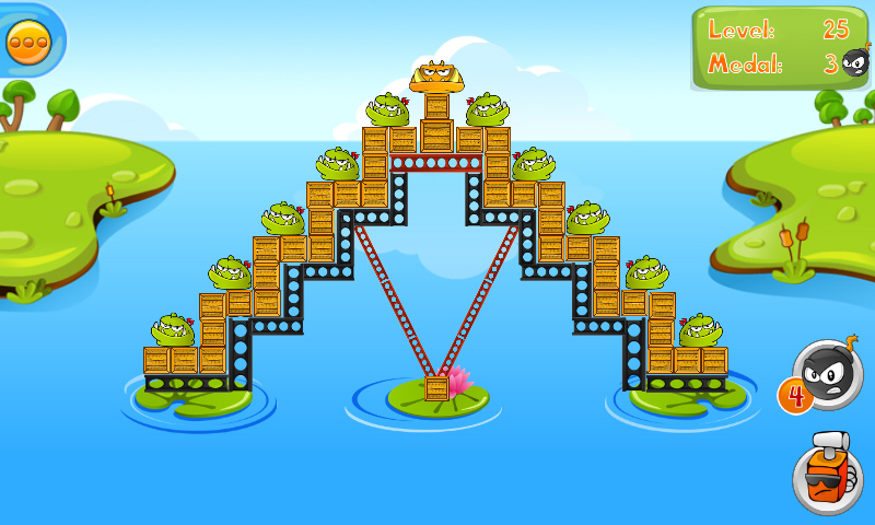 Das bekannte Spielprinzip erlaubt einen angenehm unkomplizierten Spieleinstieg: Aufgabe ist es, mit einer begrenzten Zahl an Bomben einer Vielzahl von Monstern Level für Level den Garaus zu machen. Doch die klebrig-häßlich-unliebsamen Gegner haben es sich an diversen Objekten und auf allerlei verwinkelten Aufbauten bequem gemacht, so dass Bomben taktisch geschickt und im richtigen Augenblick zum Einsatz kommen müssen, um beispielsweise Holztürme oder Baumwipfel physikalisch korrekt mitsamt den fürchterlichen Besetzen „wegzubomben“.