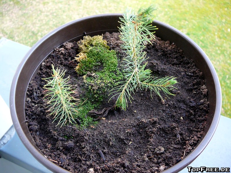 Aufgeteilt in jetzt drei Töpfe, haben nicht alle Fichten den Winter so ganz überstanden. Eventuell wird es demnächst ja wieder schöner?