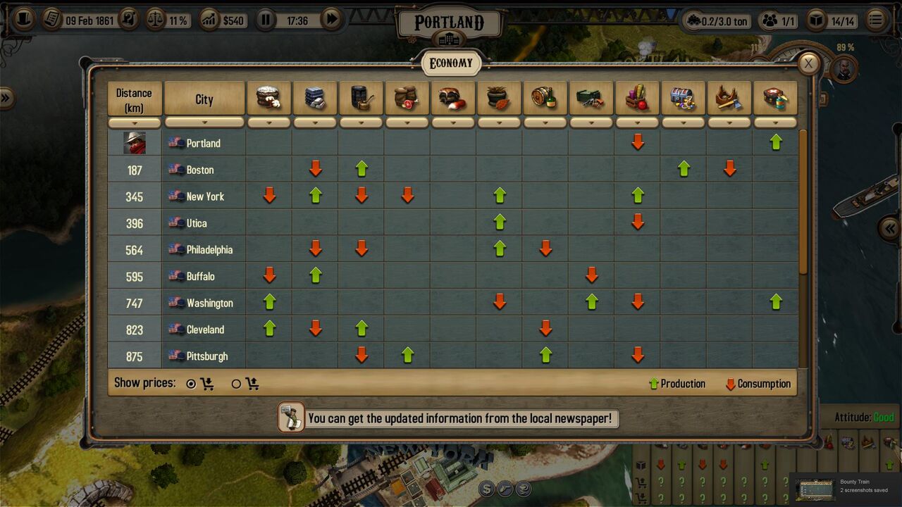 Bounty Train ist eine komplexe, taktisch anspruchsvolle Railroad Simulation mit einzigartigem Spielkonzept, die ihre Tiefe Schicht für Schicht entfaltet. Der Spieler findet sich in Nordamerika des 19. Jahrhunderts wieder und kontrolliert einen Dampfzug. So fährt er handelnd von Stadt zu Stadt, wehrt in strategischen Echtzeitgefechten Angreifer ab – und managt den Zug, von der Auswahl des Personals über die Zusammenstellung der Waggons bis zur Beschaffung von Heizkohle.