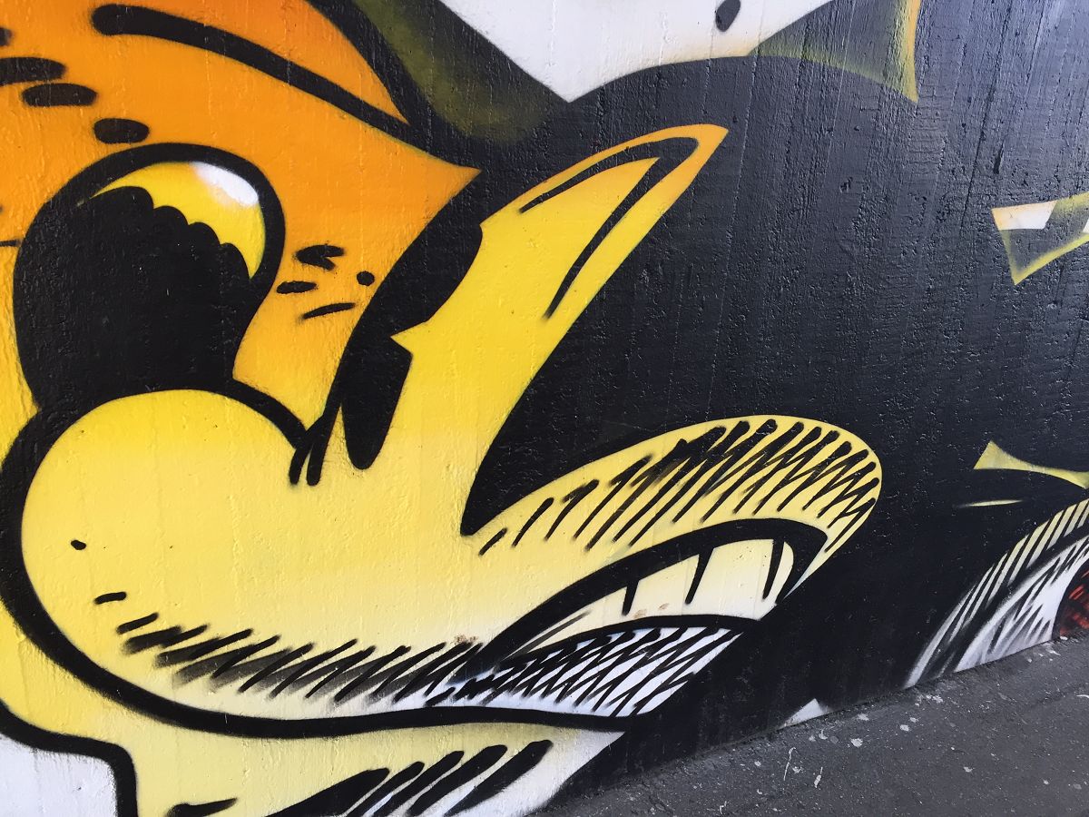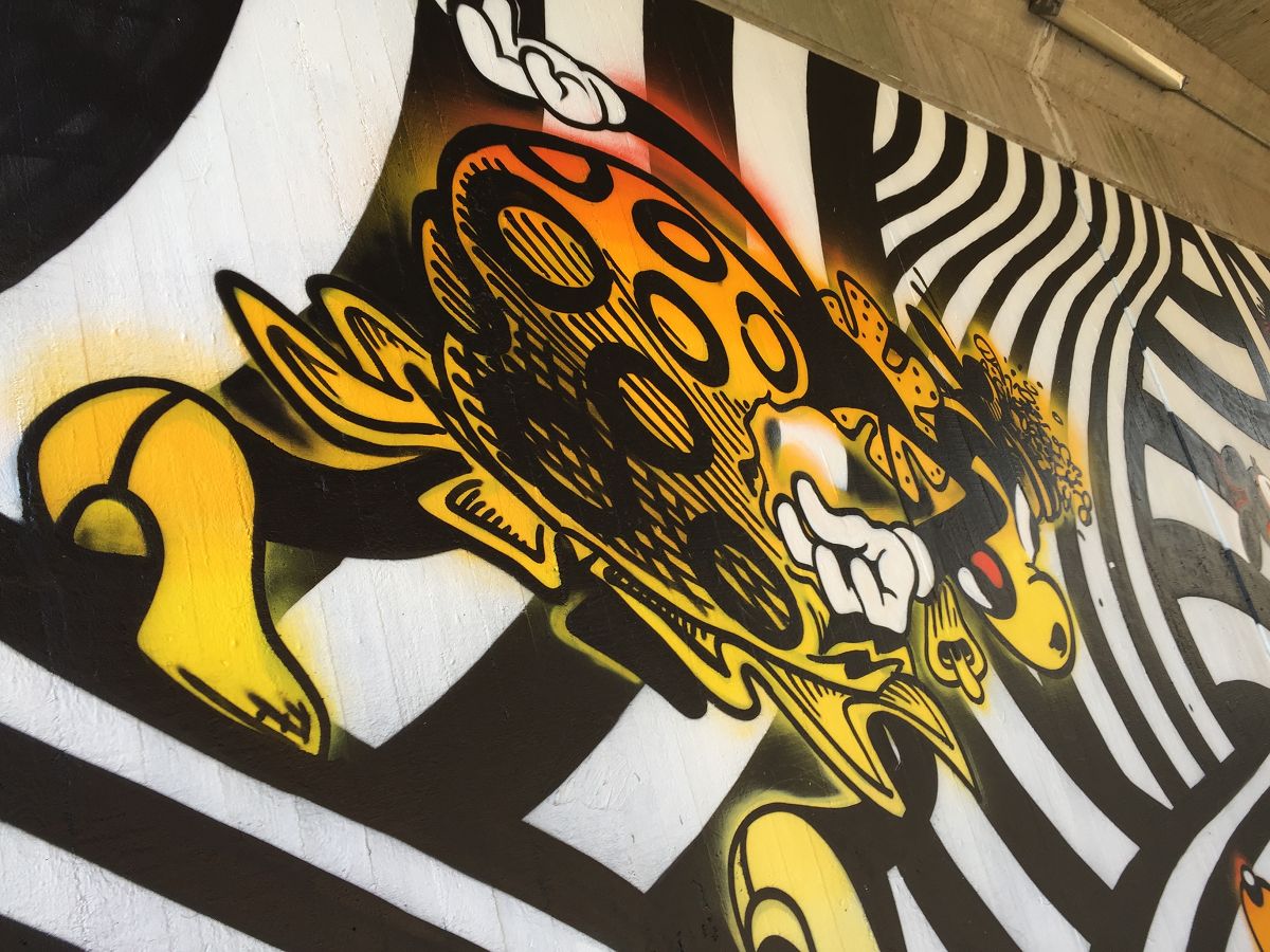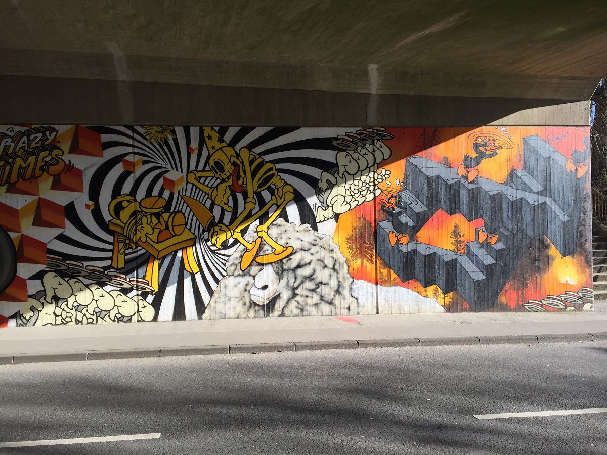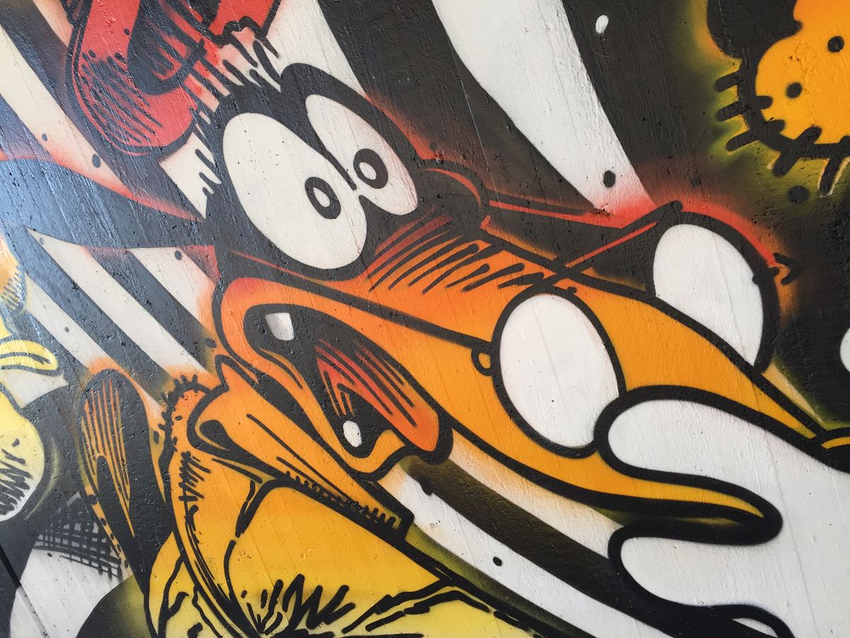 Fundstück in Wuppertal unter einer Brücke. Schöne Comic-Kunst als Graffiti. Hier die Fotos der Sprayer-Kunst: