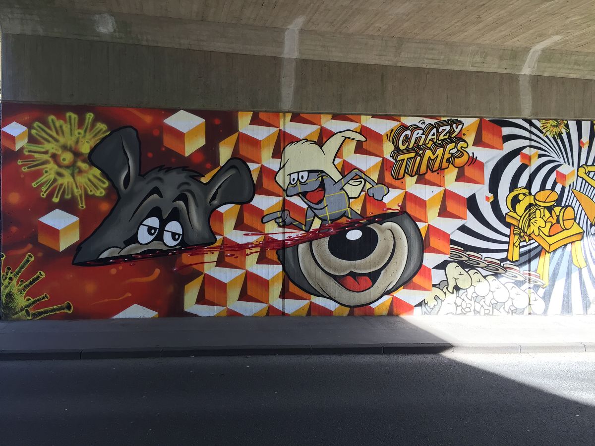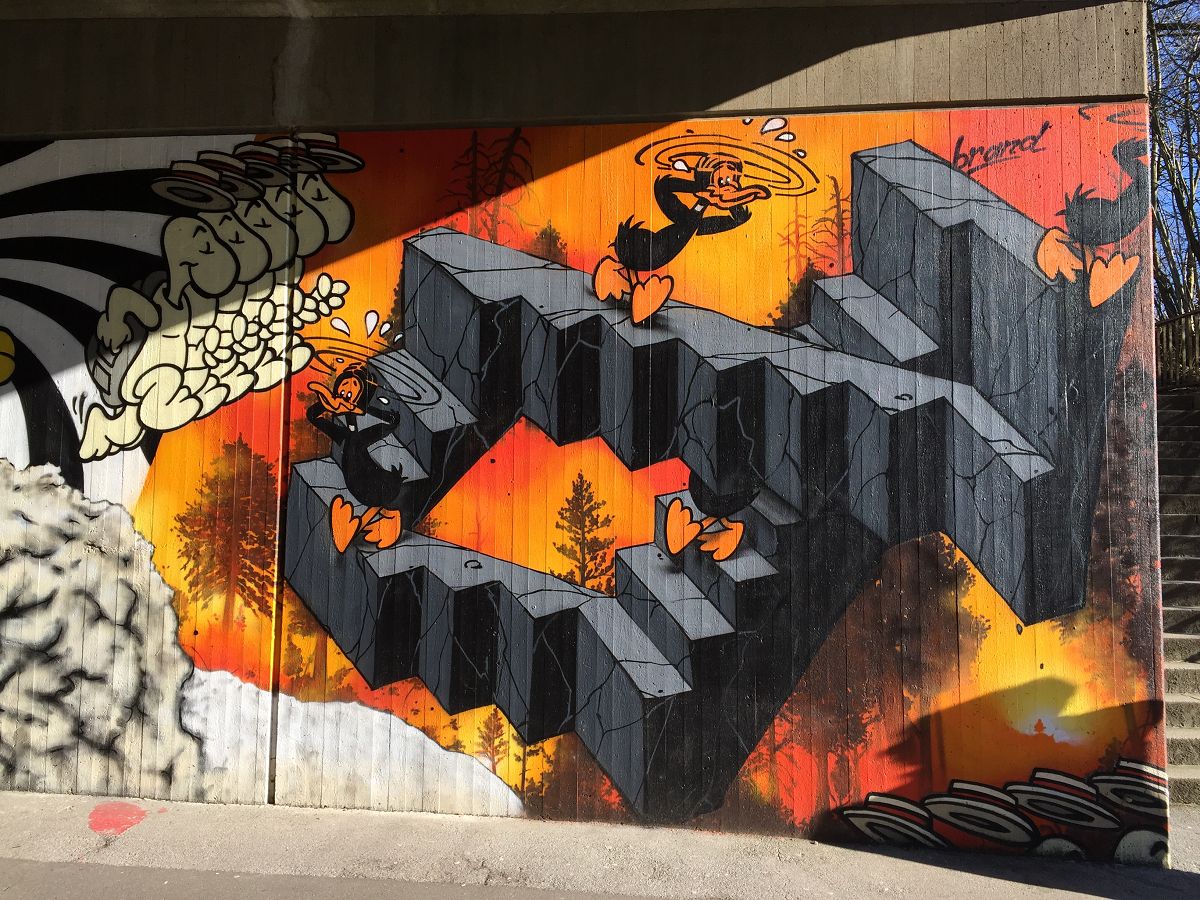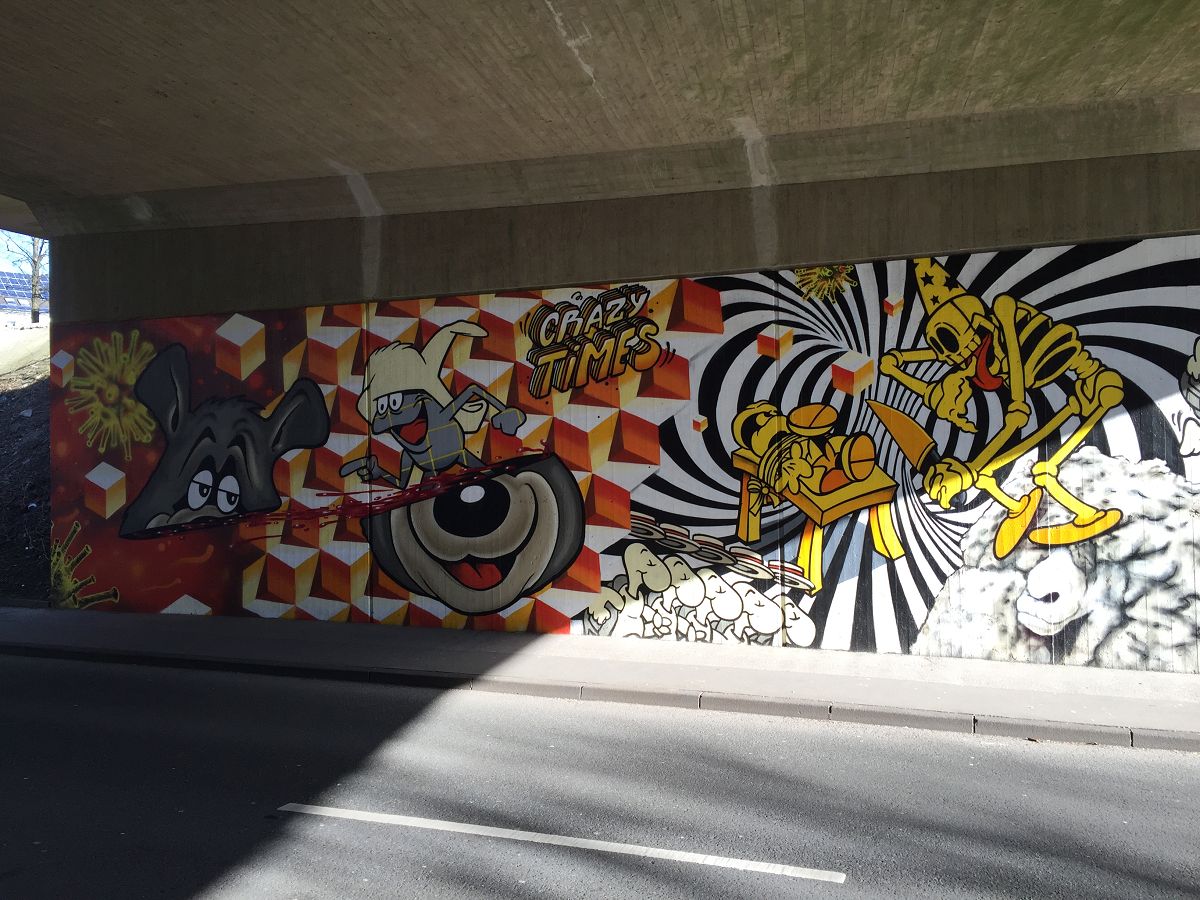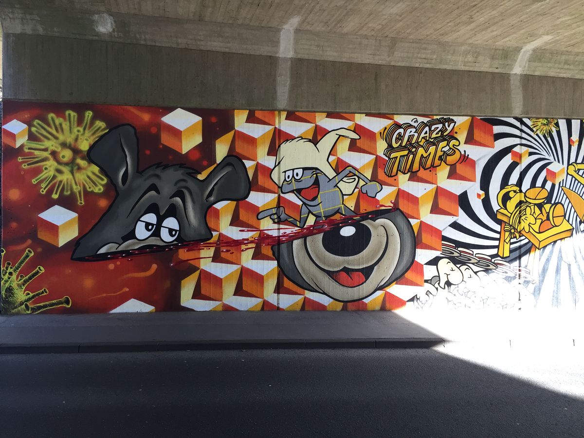 Fundstück in Wuppertal unter einer Brücke. Schöne Comic-Kunst als Graffiti. Hier die Fotos der Sprayer-Kunst: