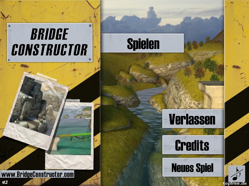 Das Spielprinzip ist gleich geblieben, wie beim im Jahr 2000 erschienenen Bridge Builder. Zum Bau der Brücke stehen einem Holz, Stahl, Beton und Stahlseil zur Verfügung, wobei zu Beginn nur mit Holz gebaut wird. Nach und nach schalten sich die weiteren Bauelemente frei. Im Laufe der Levels steigt natürlich auch der Schwierigkeitsgrad der insgesamt über 30 Levels an. Bridge Constructor besitzt zudem eine Highscore und Facebookanbindung, sowie fünf verschiedene Landschaften. Insgesamt ist die Grafik recht mau, reicht für das Spielprinzip aber aus, da es hier auf Knobelaufgabe des Brückenbaus ankommt. Schon nach einigen Leveln sind zumeist mehrere Versuche nötig, damit die Brücke nicht zusammenbricht. Schaffen es sogar die schwereren LKWs darüber, gibt dies einen zusätzlichen Bonus an Punkten. Gespielt wird mit der Maus (links: bauen, rechts: löschen, Mausrad: zoomen) Entwickelt wurde die Brückenbau-Simulation vom österreichischen Hersteller ClockStone.