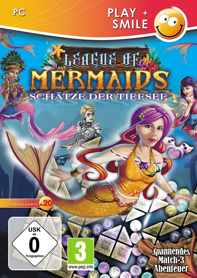 Das spannende 3-Gewinnt-Abenteuer League of Mermaids: Schätze der Tiefsee entführt unternehmungslustige Spieler in eine schillernde Unterwasserwelt. Auch diesmal wird dringend Hilfe benötigt: Die heiligen Schätze der Meerjungfrauen wurden offenbar gestohlen. Das Fatale daran: Sie beschützten bisher das friedliche Volk vor dem großen, bedrohlichen Kraken. Sollten die rettenden Kostbarkeiten nicht rechtzeitig gefunden werden, wird das Untier vom Meeresboden aufsteigen und sämtliche Unterwasserstädte zerstören! In 60 verschiedenen Levels bilden geschickte Retter nun Kombinationen aus drei oder mehr gleichfarbigen Perlen, um diese abzubauen – und so die überlebenswichtigen Schätze wieder zurückzuholen. Das Spielprinzip weicht dabei ein wenig vom gewohnten System ab: Die bunten Kugeln befinden sich nicht auf einem Spielbrett oder in einer Kette, die abgebaut werden muss, sondern sie liegen in einer Art Schale. Der Spieler platziert nun von oben jeweils neue Perlen an vielversprechender Stelle, um möglichst spektakuläre Kombinationen zu bilden. Diese werden dann selbstverständlich mit peppigen Power-Ups und Boni sowie spannenden Extras belohnt. Wer schafft es, die wunderschöne Unterwasserwelt vor der Katastrophe zu bewahren?