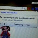 Fazit: Der Chromecast kam schnell geliefert und ist mit 35€ meines Empfindens nicht allzu teuer. Außerdem kann man so sein TV-Gerät zu einem WLAN-fähigen Gerät upgraden! Die Installation ging flott, auspacken, reinstecken, updaten, Apps auf Laptop / Smartphone und /oder Tablet laden und los geht’s. Wie erwähnt braucht man dazu den Chromebrowser, darin sieht man oben rechts ein kleines Fenster, das es erlaubt, den geöffneten Tab an Chromecast zu senden. Nun muss man nur noch die HDMI Quelle vom TV öffnen und schon sieht ma n das Bild bzw. den ausgewählten Tab. Voraussetzung dafür ist auch ein gutes WLAN, sonst ruckelt es. Negativ ist auch, dass ich nur einen halben Bildschirm habe, wenn ich Streams von Amazon schauen will. Ich finde dieses kleine Teil dennoch vorteilhaft und für 35€ ziemlich erschwinglich!