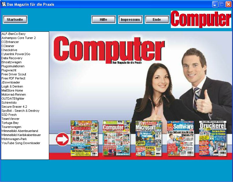 – ALF-Banco easy, Ashampoo Core Tuner 2, CCEnhancer, CCleaner, CheckDrive, Cyberlink Power2Go 8 Essential, Free Driver Scout, Free PDF Perfect, JDownloader, MailStore Home, OUTDATEfighter, Schirmfoto, Secure Eraser 4.2, Spybot – Search & Destroy, SSD Fresh, TeamViewer, Wondershare Data Recovery (mit Aktivierungscode), YouTube Song Downloader und noch das Spiel Logik & Denken.