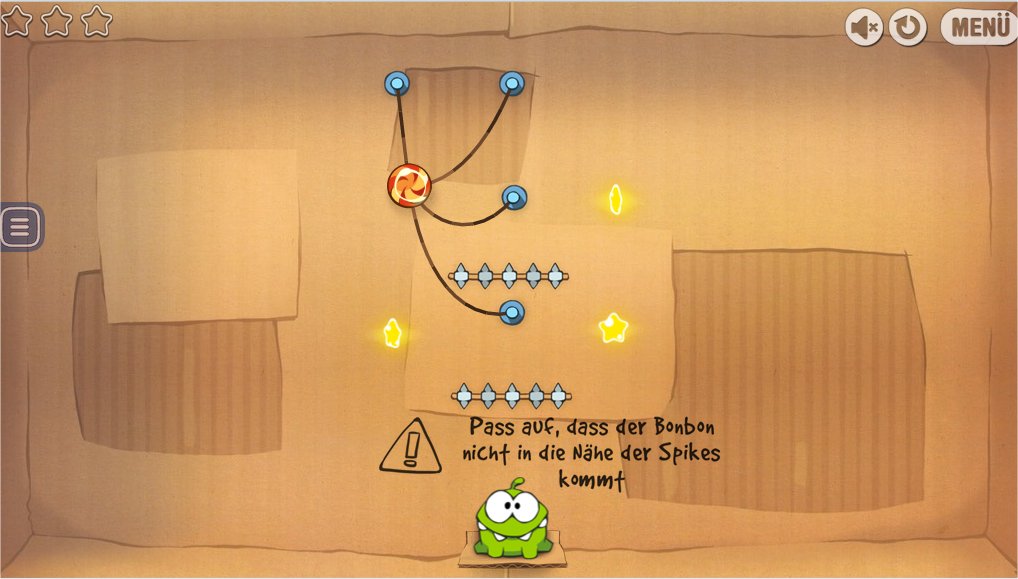 Schnipp, schnapp, das Seil ist ab! Das kleine grüne Monster aus der Kiste hat Hunger und möchte mit Bonbons gefüttert werden, die an Seilen hängen. Schere nehmen und die Seile durchtrennen, damit der Kleine was zu futtern bekommt. Drei Sterne, Seil durchtrennen – klingt jetzt nicht gerade nach der Erfindung eines neuen Onlinespiels.