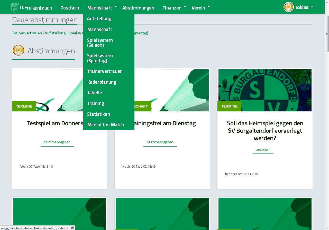 Seit zwei Monaten bin ich Mitglied beim Essener Kreisligisten TC Freisenbruch 1902 und habe ihn mit auf den ersten Platz geführt. Zumindest kann man bei Dein Club die Aufstellung und auch sonst alles mitbestimmen. Anders als damals bei Fortuna Köln mit deinfussballclub.de (DFC), seit 2012 eingestellt, soll man hier wirklich über alles mitbestimmen können. Von den Eintrittspreisen, der Taktik, den Trainer- und Spielerpostionen bis hin zum Bierpreis. Für einen Monatspreis von 5 Euro Mitgliedsbeitrag beim TCF.