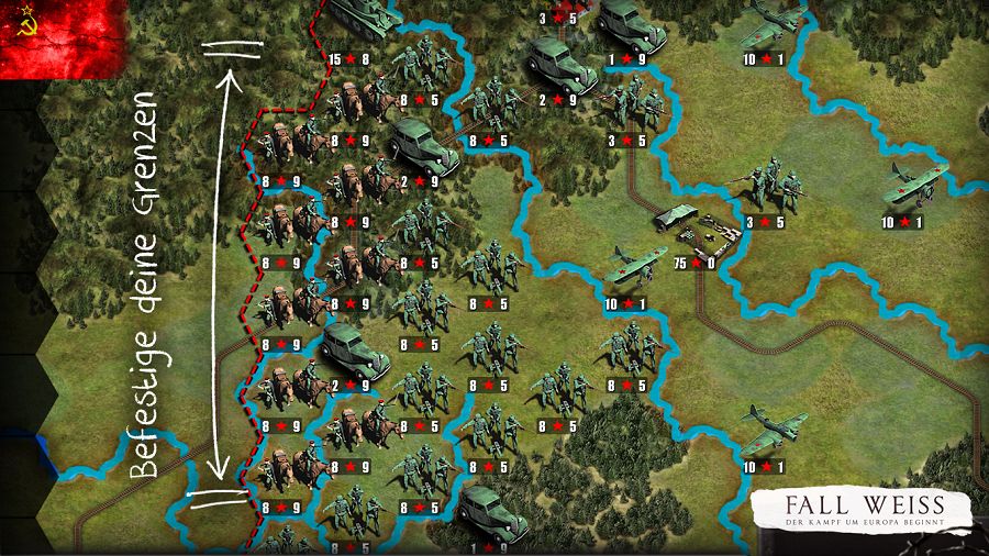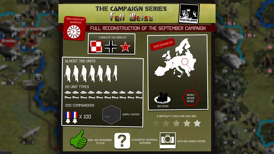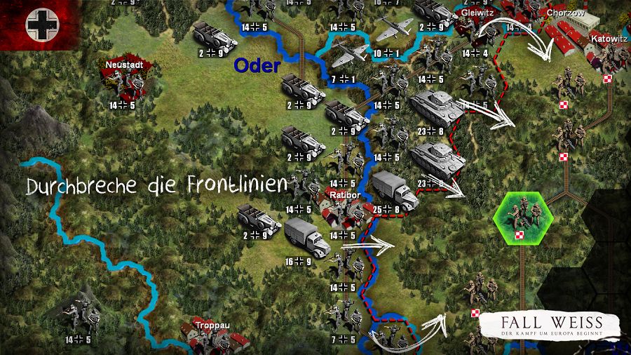 Fall Weiss PT05Wer trifft die richtigen taktischen Entscheidungen, wer versteht es Schlüsselpositionen zu besetzen, Nachschublinien aufzubauen, den Gegner in seine Schranken zu weisen? Fall Weiss ist ein rundenbasiertes Strategiespiel, welches die historischen Szenarien akkurat nachstellt und vom Spieler Weitblick, Konzentration und cleveres Vorgehen verlangt.