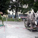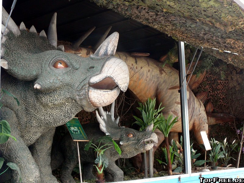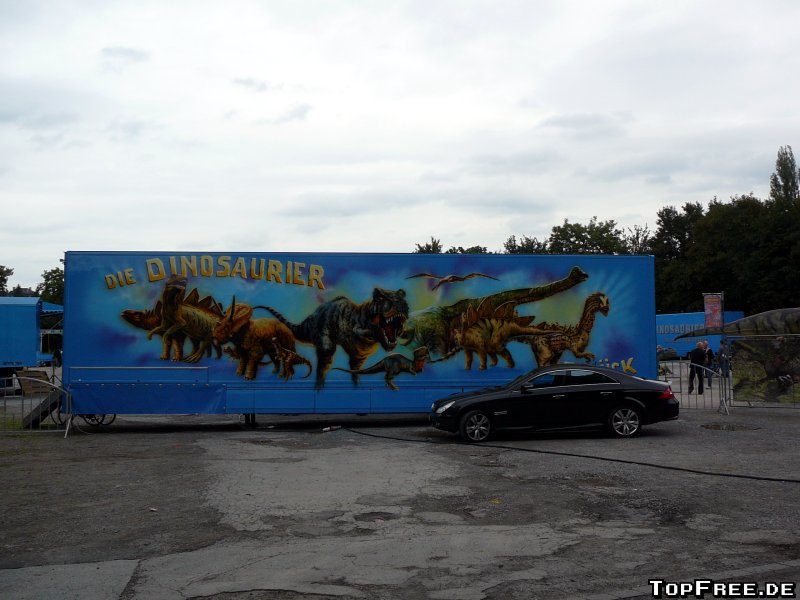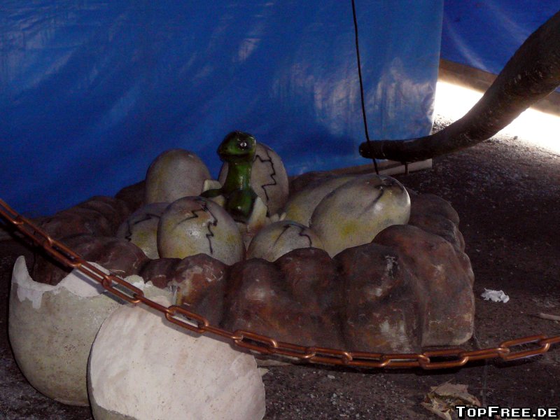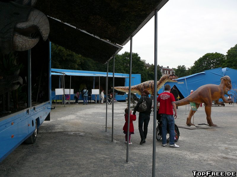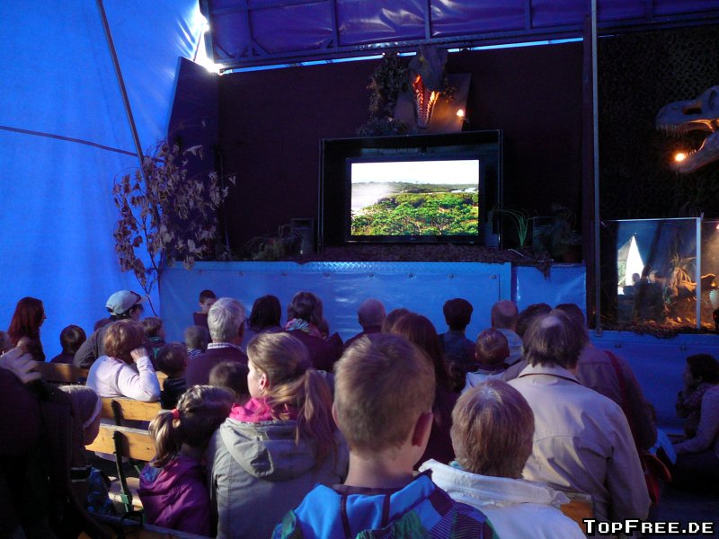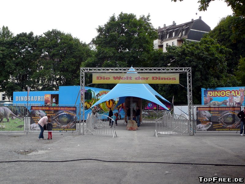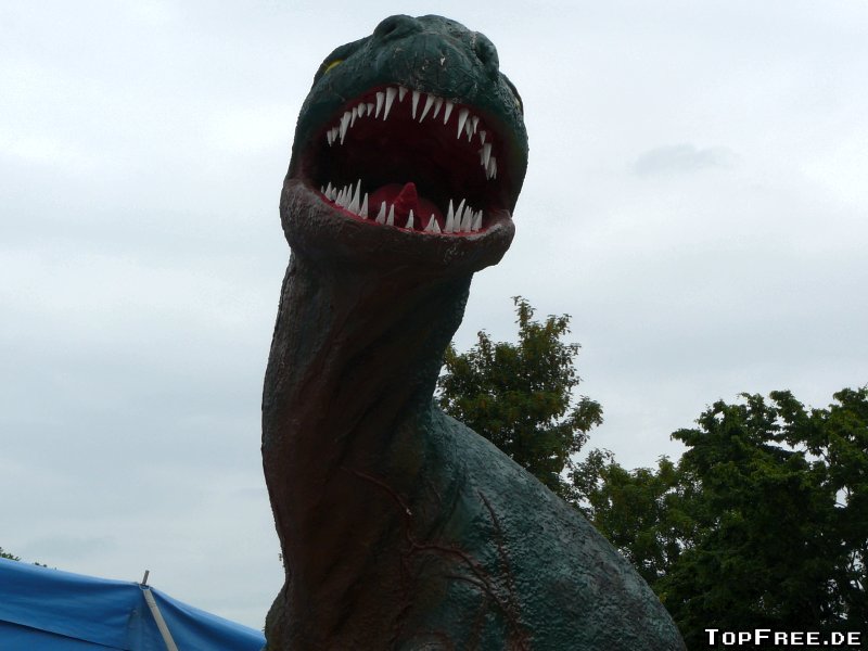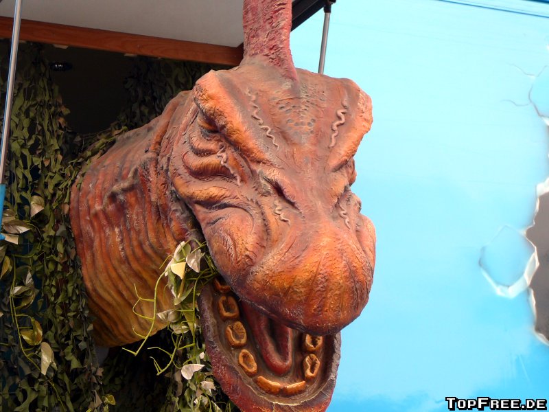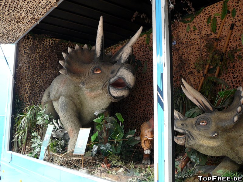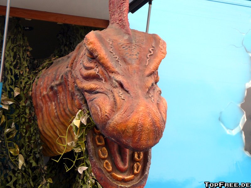 Fazit: Angepriesen wurden bewegende Dinos und eine „lehrreiche Dino-Ausstellung“. Die Hinweistafeln waren ganz informativ, ansonsten gab es viel bereits in die Jahre gekommende Dinosaurier – wie passend. Leider sieht das Ganze aber ziemlich unschön und unecht aus. Ein T-Rex wackelte aus einem Wagen heraus mit dem Kopf, das war es auch schon an Bewegung. Dazu kommt der recht hohe Preis, das macht wenig Spaß. Da es auch noch einen Snack- und Souvenir-Stand gibt, wird man dort wohl mit Kindern ebenfalls noch Geld investieren (müssen). Ob ich nochmal hingehen würde? Nein.