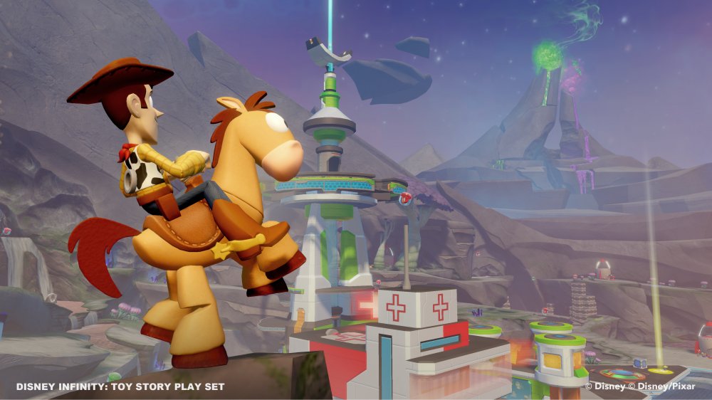 – Playset: Das „Toy Story“-Playset ist das sechste Playset für Disney Infinity und enthält Buzz Lightyear sowie Jessie – Woody kann separat erstanden werden. Die Spieler können die neue Kolonie und ihre Freunde verteidigen, indem sie neue Space-Ranger-Ausrüstung freischalten. Das „Toy Story“-Playset bringt Hover- und Jetpacks, Laser- und Schleim-Waffen, neue Reittiere und vieles mehr in den Toybox-Modus.