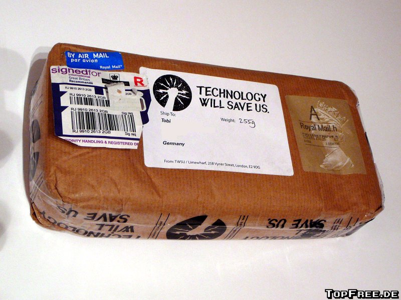 DIY Gamer Kit Built 1Fünf Tage hat die Lieferung aus London mit der Royal Mail über in Deutschland GLS des „DIY Gamer Kit“ bis zu meiner Haustüre (nur) benötigt. Danach war die Pre-Built Version da und bereit zum Auspacken. Allerdings muss auch in der vorgelöteten Variante der „Handheld zum Selberbauen“ noch zusammengesteckt (und geschraubt) werden. 9v-Batterie und Arduino reinstecken und schon kann es mit dem vorinstallierten Snake-Spiel losgehen…