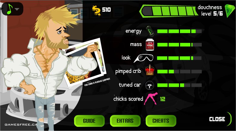 Aufgepasst ihr Nerds! Wolltet ihr nicht immer schon einmal der Mega-Muskel-Protz werden? Also ein Douchebag! Nunja, wobei ein Douchebag eher ein ziemlicher Trottel ist, harmlos ausgedrückt. In Douchebag Life kann euer Traum endlich wahr werden! In dem Flashspiel verwandelt ihr euch vom Computernerd in den begehrten Obermacker mit soliarium-gebräuntem muskelbepacktem Körper. Doch dafür habt ihr in bekannter Point-and-Click-Manier nur 14 Tage Zeit. Da der Sommer ja schon angefangen hat: Auf gehts! Achtung: Prolospiel!