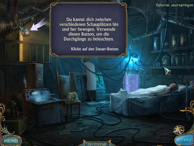 Während du durch die einzelnen Szenen gehst, wirst du Dinge finden, die du verhältnismäßig schnell auch einsetzen kannst. Jeder Alptraum ist klar begrenzt,deshalb beschränkt sich das hin und her laufen in diesem Spiel, welches also einen flüssigen Spielverlauf garantiert. Weiß man einmal nicht wohin, hilft der Tipp weiter, eine zusätzliche Schaltfläche gibt dir die Möglichkeit nur die möglichen Richtungen angezeigt zu bekommen. Manche der Szenen kann man nach rechts oder links schieben, aber nicht alle. Da heißt es aufgepasst, denn wenn eine Schiebung möglich ist, finden sich dort auch wichtige Dinge.