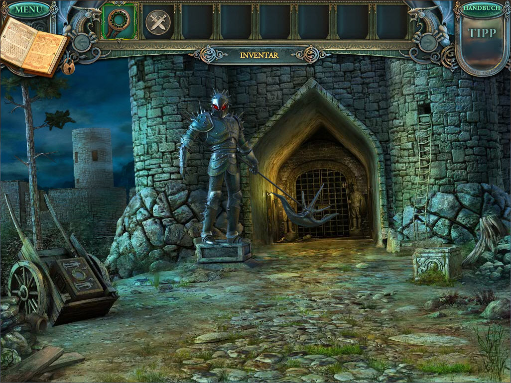 Ziel in diesem Spiel ist es, alle Steine des magischen Zauberstabs zu finden, die die Hexe im ganzen Königreich verteilt hat. Nur dann hat das Land die Chance. Du als Held aus der Zukunft wirst mit zahlreichen Aufgaben und Rätseln konfrontiert und immer wieder befinden sich Bürger der mittelalterlichen Welt in Schwierigkeiten. Anhand von Minigames und Wimmelbildspielen erspielst du dir nützliches Inventar, um zum einen weiter zu kommen und zum anderen die Bewohner zu retten. Was noch nicht so gängig ist, ist die Art von Minigame, wo man Gegenstände in die Szene wieder einordnen soll, dass beschert einem manchmal Kopfzerbrechen, aber da hilft einem der Tipp-Button weiter. Dieser lädt sich im einfachen Modus schnell wieder auf und funktioniert auch innerhalb von WBS. Weiß man außerhalb einmal nicht weiter, öffnet sich ein Bild mit der Szene, wo etwas zutun ist. Es wird sogar auch der nächste Schritt angezeigt. Das ist natürlich gut für Anfänger, aber auch für Pro-Gamer, die eventuell mal ein Brett vorm Kopf haben.