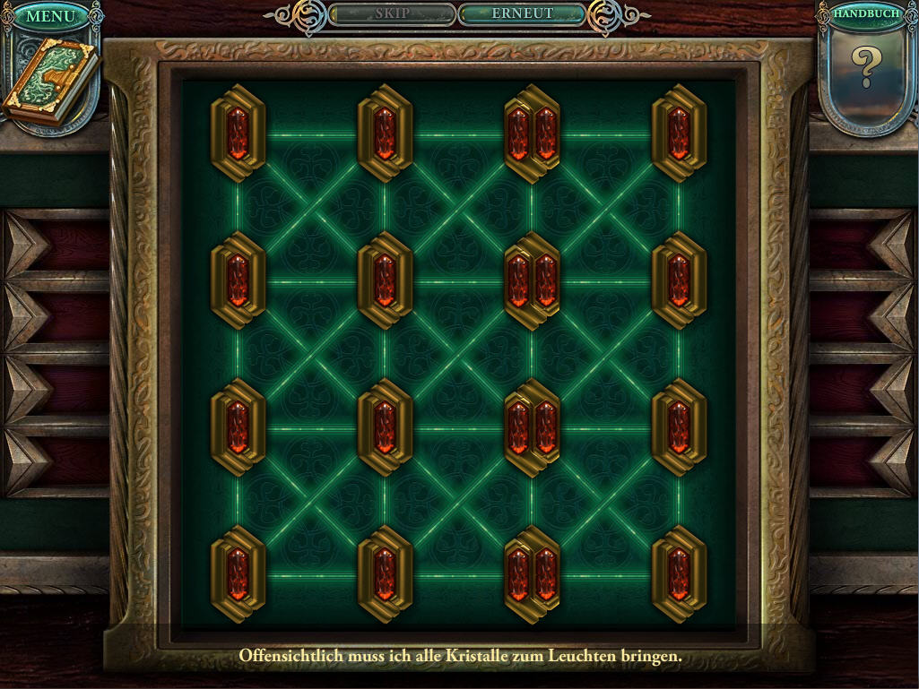 Die Szenen sind schön mystisch gestaltet, auch die Musik dudelt seicht vor sich hin, ohne großartig aufzufallen. Die Filmszenen sind informativ, lassen sich aber auch wegklicken! Am Anfang bekommt man, wie ich finde ein spukiges Intro, in dessen Verlauf zum Ende hin erläutert wird, was passiert ist und das man nun auf der Suche nach den Juwelen des Zauberstabs ist. Außerdem kann man sich die Funktionsweise des Spiels erklären lassen. Ich schalte das aus, es ist im Spiel schließlich auch irgendwie nochmal selbsterklärend.