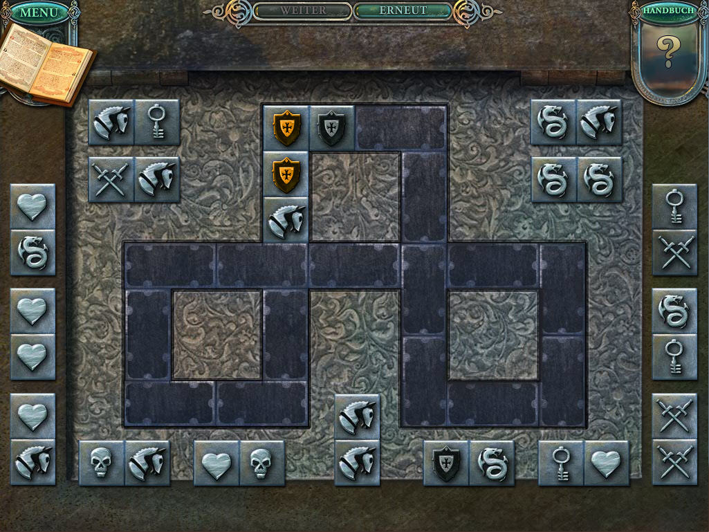 Das Gameplay ist recht flüssig, ohne großartiges hin und her Gelaufe – kann aber durchaus schon mal vorkommen, jedoch dann nicht allzu weit. Durch eine Aktion löst man wiederum z.B. eine WBS aus, wenn man Türen etc. passieren muss, kann es vorkommen, dass man zuvor noch ein Minirätsel lösen muss. Diese sind wie ich finde nicht immer leicht. Im einfachen Modus gibt es aber die Möglichkeit, das Minigame nach einer Weile zu überspringen. Wimmelbilder sind anhand von Wortlisten zu lösen, rote Wörter erfordern eine Aktion, um sie aufheben zu können. Es gibt z.B.. auch kaputte Wappen, diese sind in Fragmente zersplittert, die man aufheben und z.B. kleben muss, um dann davon als vollständiges Stück Gebrauch zu machen.