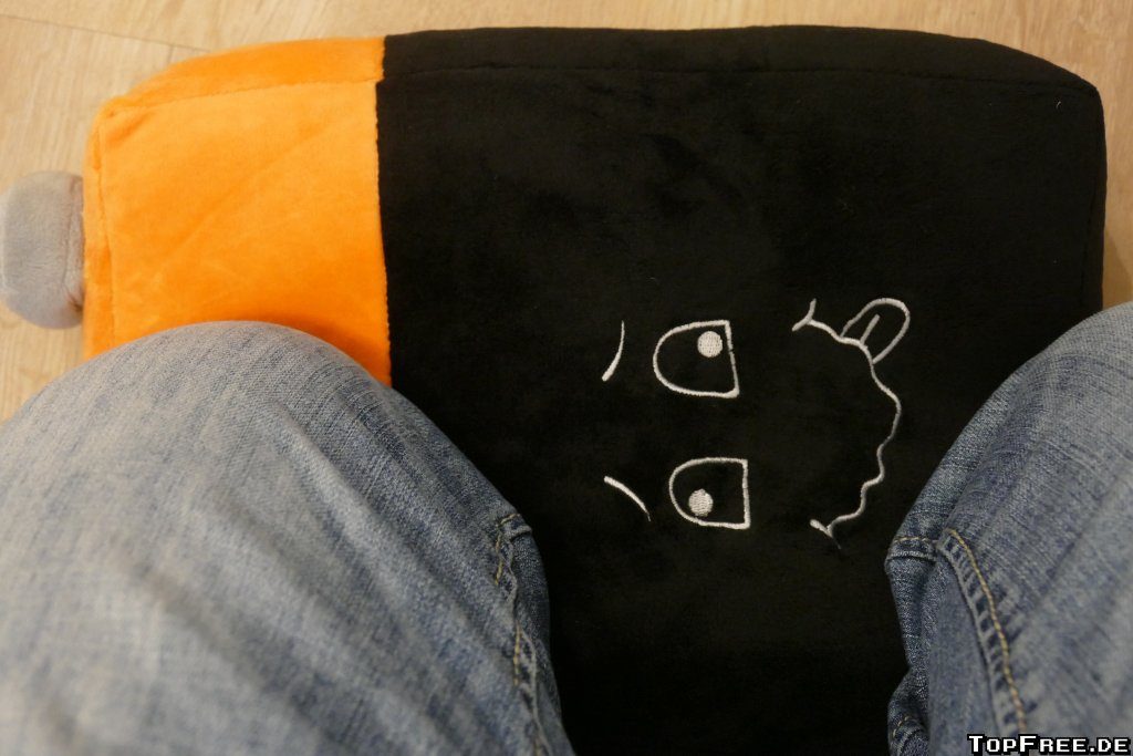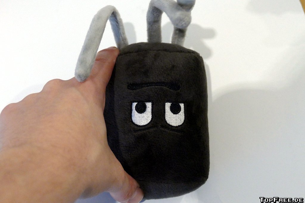 Hallo, ich bin Bertha, die große Batterie! Bertha ist schön groß und flauschig, macht ein lustiges Gesicht und ist für Nerds somit perfekt geeignet. Denn beim Basteln auf dem Boden lässt sich Bertha perfekt als … Knieschoner benutzen. Tatsächlich habe ich die Bertha das erste Mal dafür verwendet und muss gestehen: Voll gut! Ansonsten möchte ich nicht so gerne auf einer Batterie knien, aber hier. Bertha, du bist so wunderbar flauschig!